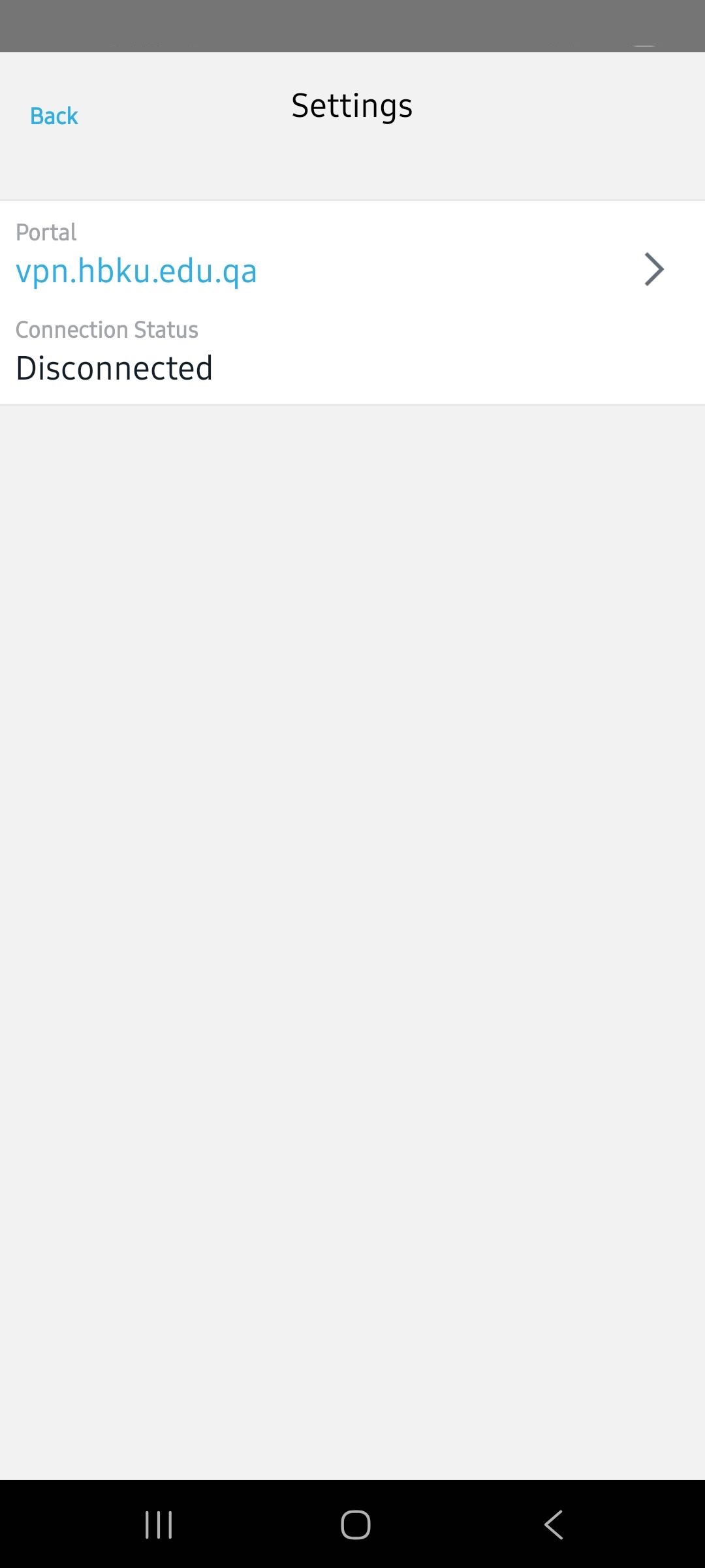 - Click on the ‘Settings’ tab and enter vpn.hbku.edu.qa, and click on status