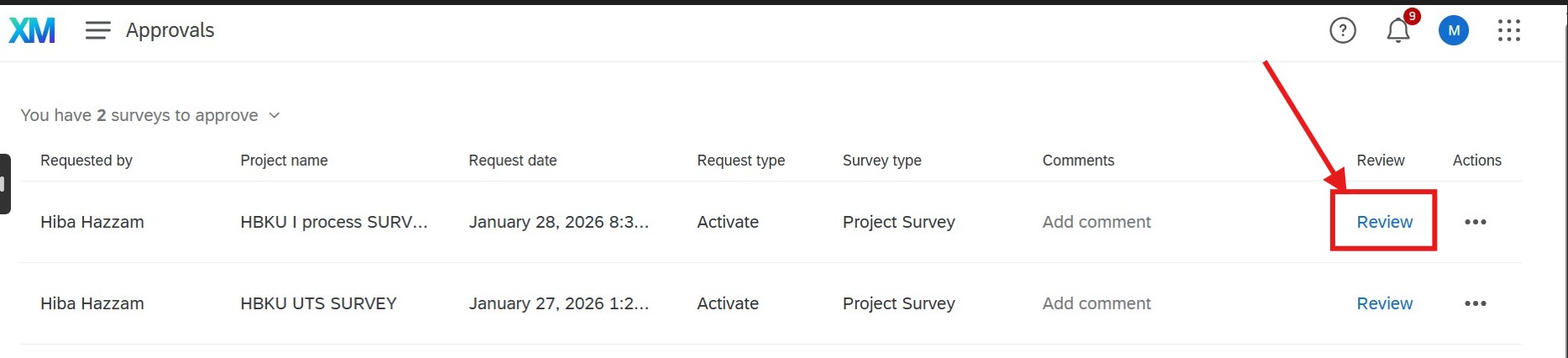 • Login to Qualtrics System with your HBKU email and password and then you will land to approvals page as below.