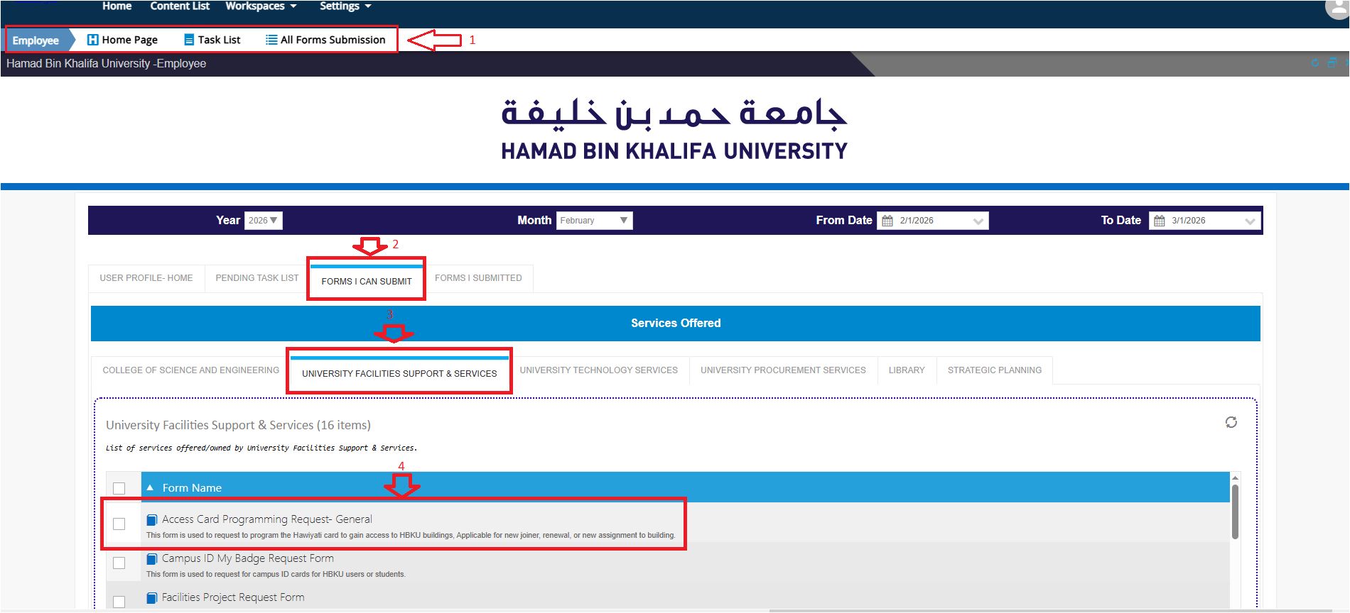 • All HBKU employees can submit this request.