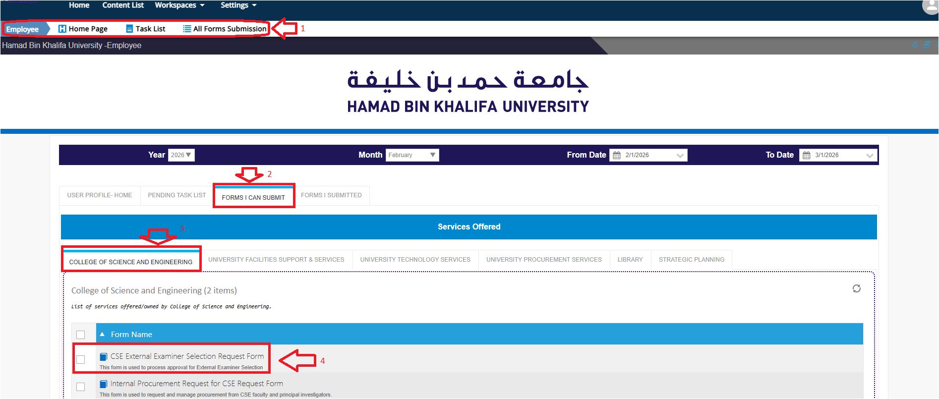 - Navigate to https://iprocess.hbku.edu.qa/