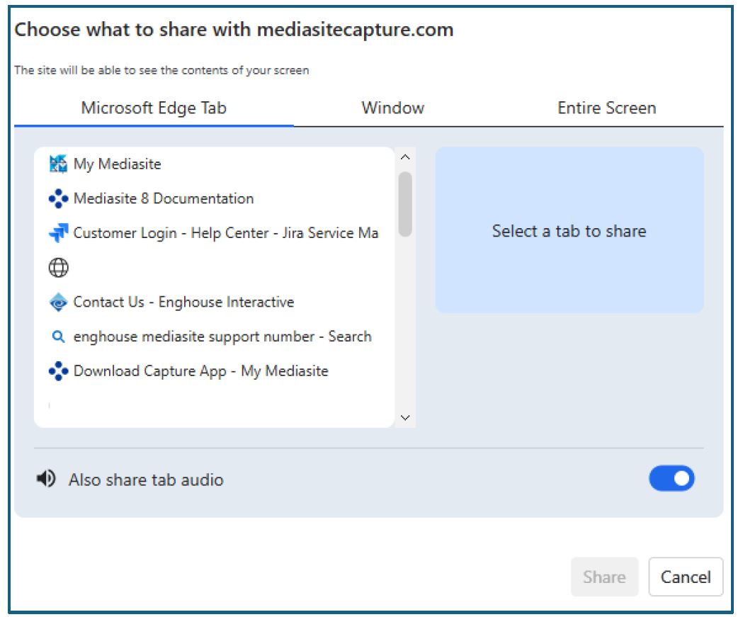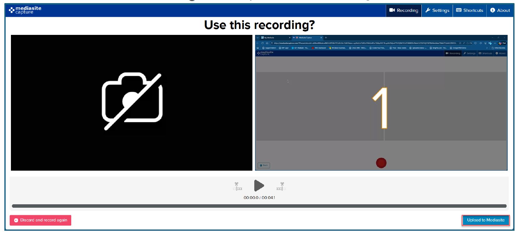 22. Once the recording is complete, click on Upload to Mediasite