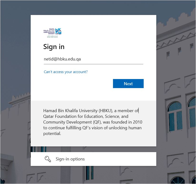 - Enter your HBKU email credentials