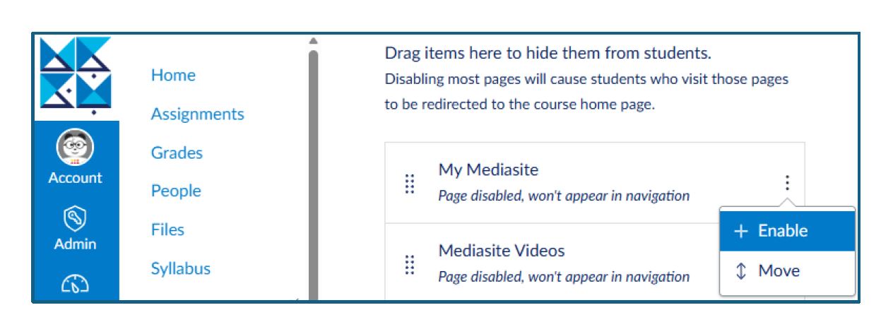 7. Enable My Mediasite and Mediasite Videos.