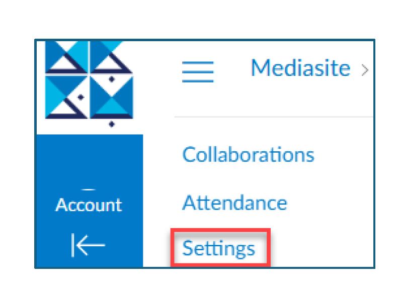 4. Click on Settings if you are unable to find My Mediasite