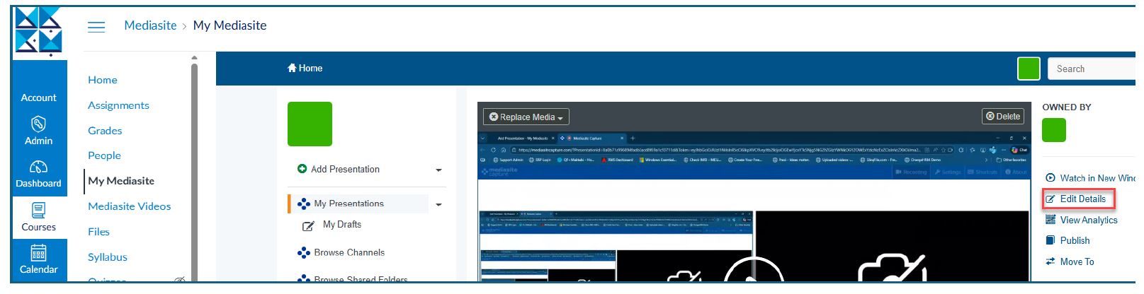 23. Click on My Mediasite in your course